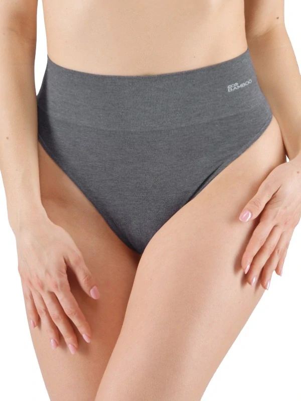 COLETTE dámské bezešvé bambusové tanga s vysokým pasem a širším lemem, šedá - bílá