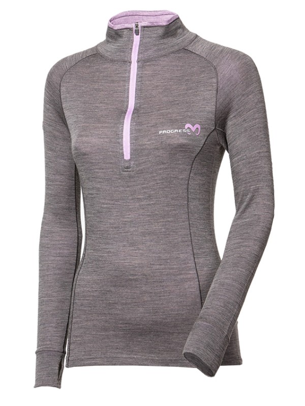 KIRKÉ II. dámský funkční rolák, dlouhý rukáv, krátký zip, tmavě šedá - levandule